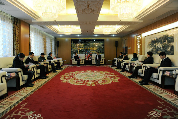 3月1日下午,中央常务副主席刘晓峰,副主席兼秘书长何维、副主席龚建明在中央机关接待中共湖南省委常委、统战部部长李微微一行并就有关工作座谈。办公厅主任游宏炳、副主任王素芳,组织部副部长杨小娟等参加。