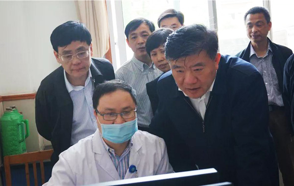 2014年,农工党中央调研组赴浙江调研在斗门镇社区卫生服务中心,陈竺、何维查看医院相关资料