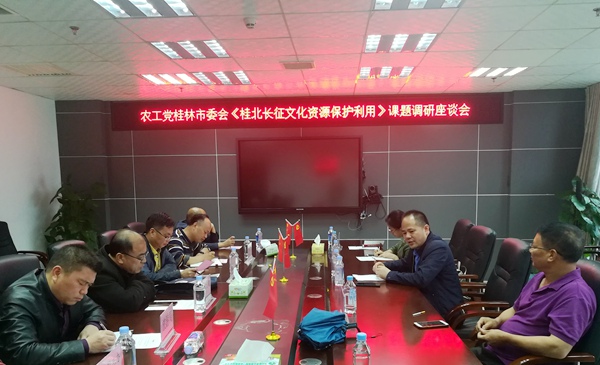 2019年,农工党桂林市委会承接了中共桂林市委重点课题《桂北长征文化资源保护利用及湘江战役红军烈士遗骸收殓工作调查研究》。4月29日至30日,市委会主委农军带领调研组到全州县就该课题开展调研。