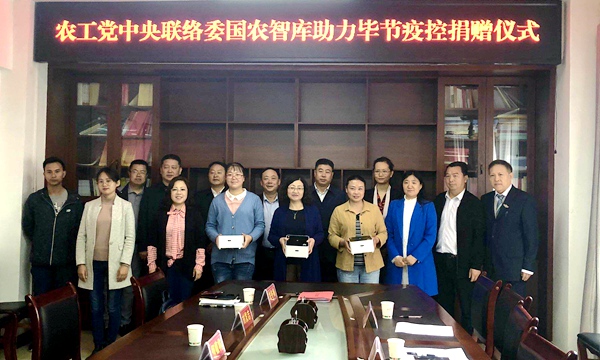 2019年5月20日上午,农工党中央联络工作委员会与国农智库疾控疫控工作委员会,在贵州省毕节市农业农村局举行“助力毕节基层疾控疫控服务能力提升公益项目设备捐赠仪式”。农工党中央联络工作委员会委员、国农智库院长谢向英,国农疾控疫控工作委员会主任、中国民主促进会北京市委员会委员李响,爱心企业卡尤迪生物科技(北京)有限公司代表出席捐赠仪式。