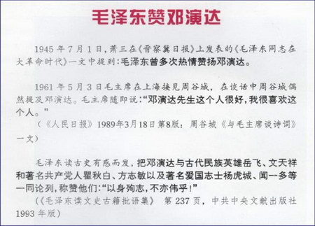 1945年7月1日,萧三在《晋察冀日报》上发表的《毛泽东同志在大革命时代》一文中提到:毛泽东曾多次热情赞扬邓演达。