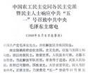 中国农工民主党同各民主党派暨民主人士响应“五一”号召致中共中央毛泽东主席电