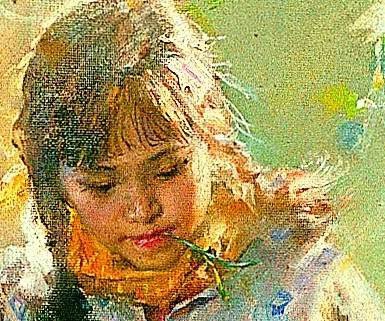 人物和背景中的物体若隐若现,除了少女的五官比较具体之外,画家没有刻意描绘人物的形体,以及其他对象的外形。阳光成为画面的主导,形色交融,穿插整个画面,一切显得自然而和谐,春意盎然,流露出春的无限生机,更显“一日之计在于晨,一年之计在于春”之主旨。
