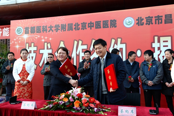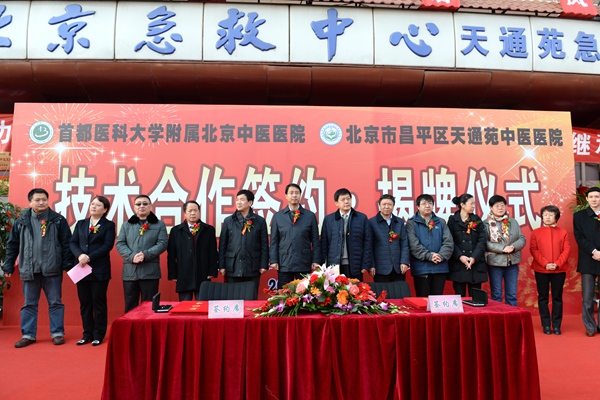 2016年3月2日上午,北京市昌平区天通苑中医医院与首都医科大学附属北京中医医院全面合作签约揭牌仪式在昌平区天通苑中医医院隆重举行。北京市中医药管理局医政处处长赵建宏、昌平区卫计委副主任杨杰,以及市区两级的相关领导同志应邀出席此次签约揭牌仪式。
