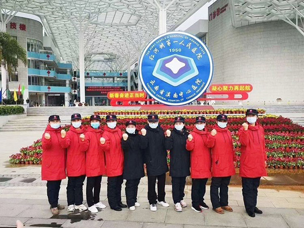 红河州第一批援助武汉的20名队伍中,红河州第一人民医院呼吸与危重症医学科一共出征了三名护士,高薇是她们三人中年龄较长的。面对武汉严峻的疫情,问及她是否有担心,是否会后悔这个选择时,她说:“不担心是假的,但决不后悔,主动请缨,能被筛选上参加这次非同寻常的抗击疫情的战斗,可能一辈子就这么一回。这是组织对我的信任,我感到无比荣耀,一定不辱使命!”