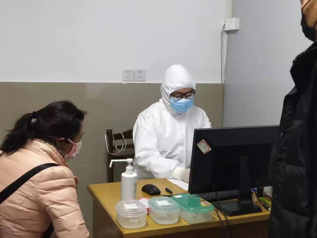 农工党博望支部副主任王铃(中)统筹安排和指导新市镇卫生院防控工作,积极筹措防护物资,让奋战在一线的同仁无后顾之忧。此外,朱隆花同志坚守本职岗位,做好沟通上下,协调左右,联系各方的枢纽及药品、防护物资保障、分配工作。