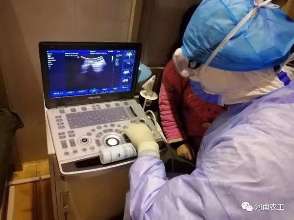 从2月13日下午16时左右收治首位患者开始,河南第五批医疗队整体接管武汉青山区方舱医院,一场尽快让更多患者恢复健康的“战役”已经打响。进入方舱医院的第一天,大家各展专长,迅速进入工作状态。每组队员要在6个小时内保持不吃不喝、不上厕所的状态,每名队员要做好高度防护,穿上自备的成人纸尿片,看护多名患者。史源医生也穿戴整齐,与他的得力小伙伴“便携彩超M9”时刻“迎战”。