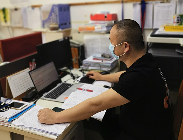谢雄政作为分管学校初中部全面工作的副校长,同时也一直在教学一线担任教学工作。面对由于疫情全国各级各类学校开学时间一再延迟,毕业班面临中考备考的情况,为了确保延迟开学不延误教学进度,更不能因延迟开学而影响毕业班中考备考工作。根据南宁市教育局的统一部署,结合学校实际情况,谢雄政从正月初六开始利用线上平台主持召开学校教务处、教研组会议和全体教师会议,全面部署师生线上“停课不停教不停学”工作,并亲自为初三毕业班同学线上授课,确保中考备考不因疫情受到影响。