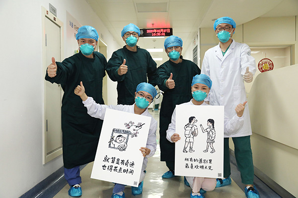 这是一份特殊的礼物,一贴治愈心灵的偏方,在这个堪称艰难的时刻,来到和漫画一样可爱的人身边,给第一线的医护人员及患者们缓解了压力,带去满满加油鼓劲的正能量。