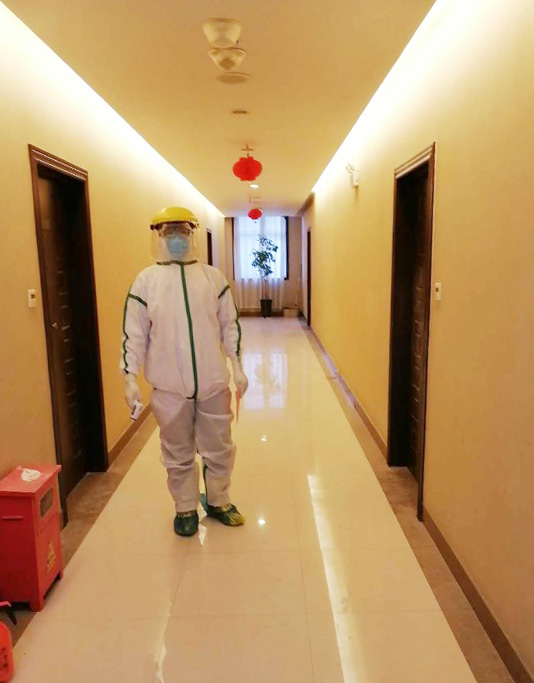 到了珏山医学观察点已经是凌晨两点半了,崔俊一行四人换上隔离衣,相互检查有无遗漏后,就开始给观察者安排房间、测体温、车辆消毒以及登记工作。救护车司机一次往返只能接送一名观察者,一趟趟奔波于市区和珏山观察点之间。天慢慢的亮了,又暗了……整个工作持续到第二天晚上九点,安顿好46名观察者才结束。崔俊脱下隔离衣,摘下帽子,拖着沉重的双腿回到洁净区,仔细地清洗后躺在床上一动也不想动了。