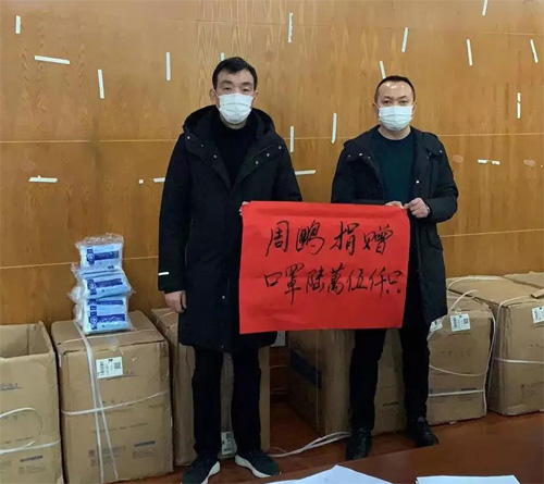1月28日和31日,周鹏分两次向东坡区疫情应急指挥部捐赠一次性医用口罩共9.5万只,多次向眉山市级、区级防疫一线进行捐赠,包括口罩22万余只,一次性医用检查手套1200只,板蓝根颗粒50件,酒精消毒液25件,护目镜99只,二丁颗粒10件,免洗手液800瓶。用于一线疫情防控工作。