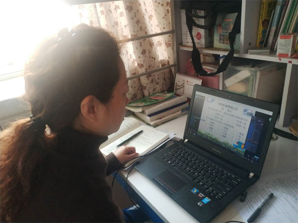 张宇龙是六年级毕业班的班主任、语文老师。作为班主任的她,除了每天实行“日报告、零报告”制度,接收学生报告,筛查谁没签到,微信联系、电话核实,网络直播课也从一开始的不知所措、无从下手,到逐渐操作熟练,再到现在的应对自如。