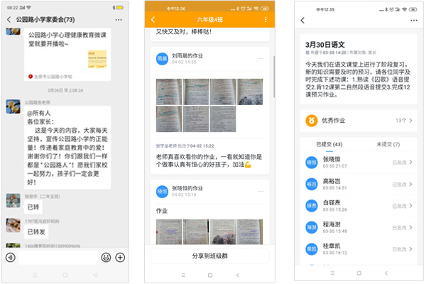 如果说战“疫”时期,教育有了特别的温度,那么这份温度一定来源于每个家长的大力支持。张宇龙负责学校家委会的沟通及教育工作。在疫情期间,每天早上,张宇龙都会准时在学校家委微信群里发布一些关于疫情防控的相关政策和防控健康知识的普及,再由各班家委主任转到班级家长群。这样不仅让他们掌握了更多的疫情防控知识,增强了家长和孩子疫情防控的信心,也做好了心理疏导和防护工作,让孩子和家长即使在居家隔离中也能感受到来自学校的暖暖爱意。
