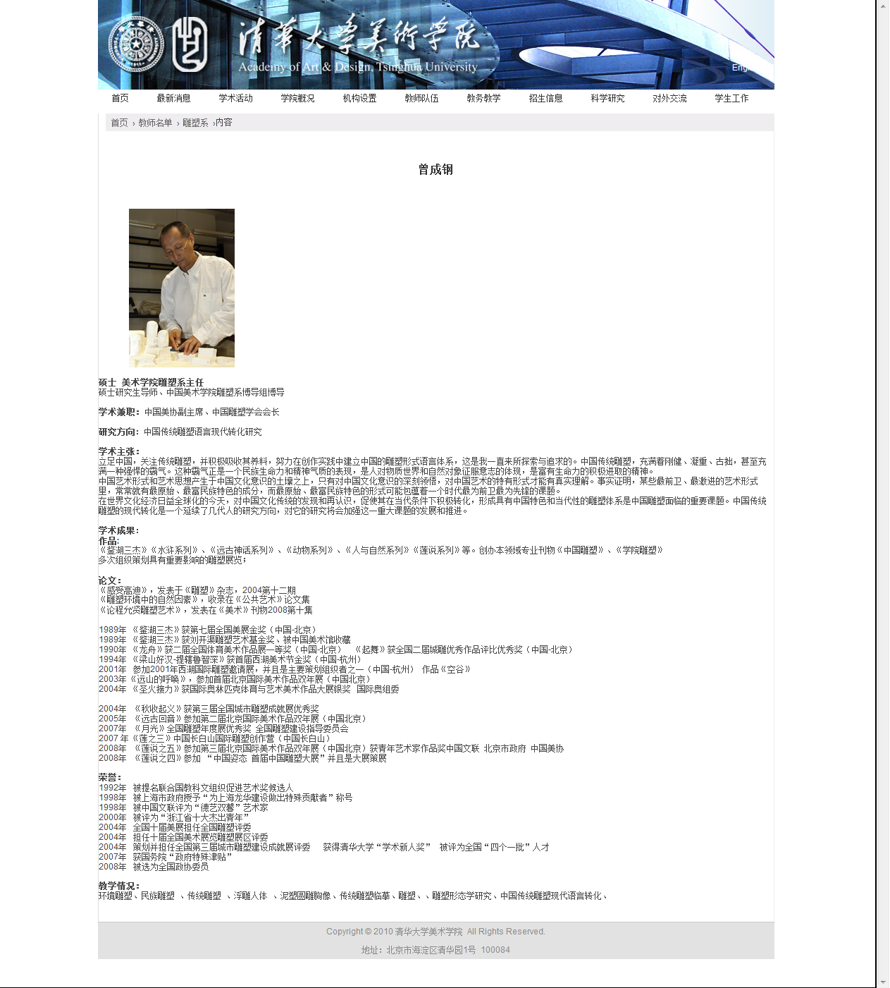 曾成钢,男,现任农工党中央文化工作委员会副主任,全国政协委员、中国文联第九届全委会委员、中国美术家协会副主席、中国雕塑学会会长,清华大学美术学院雕塑系主任。