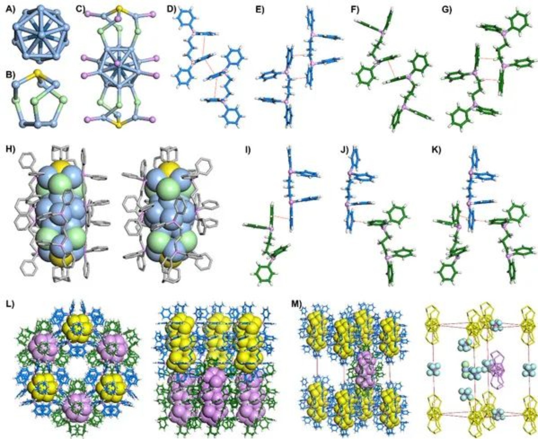 图1. Pt1Ag18的晶体结构、弱相互作用和堆积模式