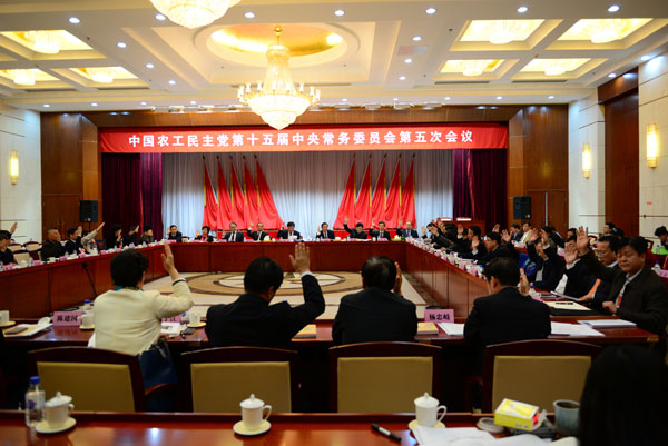 会议审议并通过了《中国农工民主党中央关于学习贯彻十二届全国人大二次会议和全国政协十二届二次会议精神的通知》、《中国农工民主党组织发展工作规程》、《中国农工民主党基层组织工作条例》、《中国农工民主党中央关于做好2014-2017年省级组织领导班子后备干部队伍建设工作的意见》以及《中国农工民主党中央关于加强社会服务工作的指导意见》。