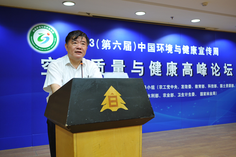 2013年7月30日上午,2013(第六届)中国环境与健康宣传周“空气质量与健康”高峰论坛在北京林业大学成功举办。全国人大常委会副委员长、农工党中央主席、国环境与健康宣传周领导小组组长陈竺出席并致辞。