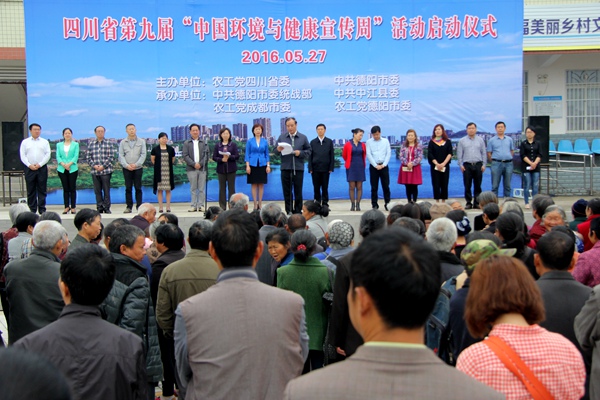 2016年5月27日上午,由农工党四川省委会、中共德阳市委联合主办的四川省第九届“中国环境与健康宣传周”活动启动仪式在德阳市中江县通济镇文化广场举行。四川省政协副主席、农工党四川省委会主委王正荣,省环保厅副厅长、农工党四川省委会副主委钟勤建,四川省人社厅副厅长、农工党四川省委会副主委罗良娟,德阳市政协副主席、统战部部长吴玉华,德阳市政协副主席、农工党德阳市委会主委谢天佑,中共中江县委副书记冯军等领导出席启动仪式。农工党四川省委会驻会副主委张庆文主持仪式。