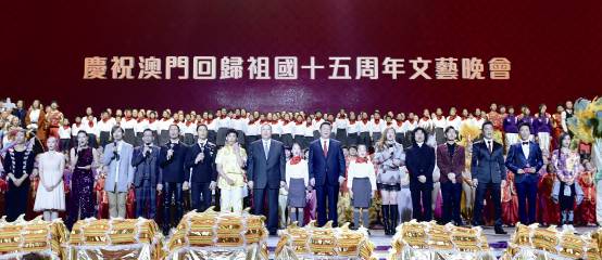 12月19日,习近平出席庆祝澳门回归祖国15周年文艺晚会。新华社记者 李涛/摄