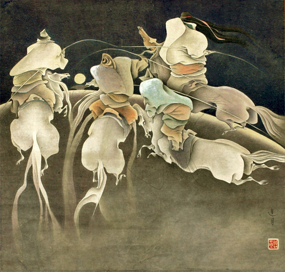 萨纳巴特尔 内蒙古 追月 国画