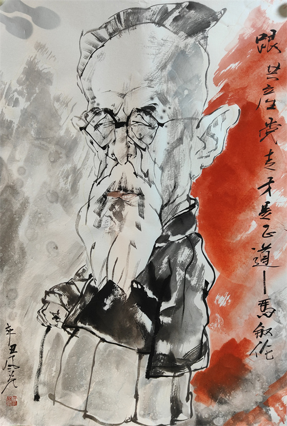 宓风光 浙江 跟着共产党走才是正道 国画