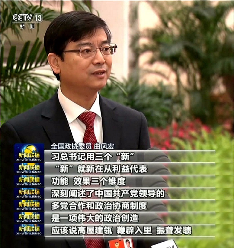 全国政协委员、农工党中央副主席兼秘书长曲凤宏在采访中说:习总书记用了三个“新”,“新”就新在从利益代表、功能、效果三个维度,深刻阐述了中国共产党领导的多党合作和政治协商制度是一项伟大的政治创造,应该说是“高屋建瓴、鞭辟入里、振聋发聩”!