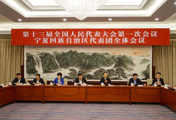 2018年3月5日下午,宁夏代表团召开全体会议,审议李克强总理所作的政府工作报告。全国人大常委会副委员长、农工党中央主席陈竺出席会议并讲话。
