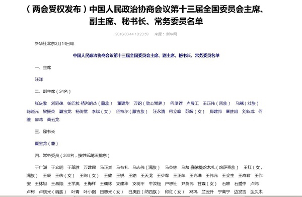 2018年3月14日,全国政协十三届一次会议在北京人民大会堂举行第四次全体会议,选举政协第十三届全国委员会主席、副主席、秘书长和常务委员。那么,有哪些农工党党员当选为十三届全国政协常务委员?据“团结报团结网”公众号统计,十三届全国政协常务委员中,共有135位民主党派成员,其中有农工党党员13位。