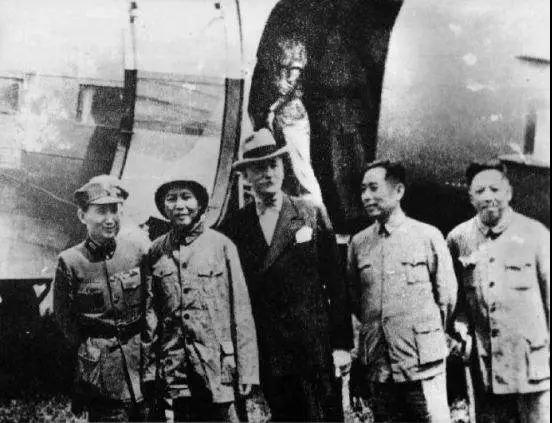 1945年8月28日,毛泽东赴重庆前在延安机场留影