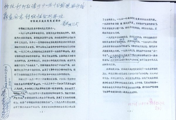 季方在《中国农工民主党党史简介》(修改稿)上的批示