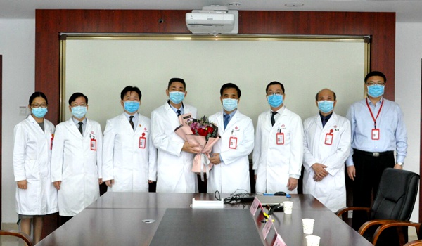 中大七院为赴援的秦鉴教授(左四)送行