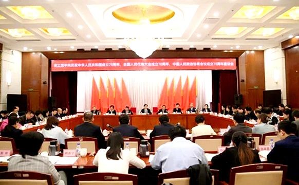 9月21日,农工党中央在京召开庆祝中华人民共和国成立75周年、全国人民代表大会成立70周年、中国人民政治协商会议成立75周年座谈会,何维主席出席会议并讲话,杨震常务副主席主持会议,王路、焦红、吕忠梅、杨关林、王金南副主席,邓蓉玲副主席兼秘书长出席会议。