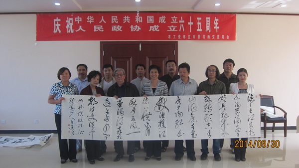 在笔会现场,10余名书画家们挥笔疾书、浓情泼墨、点染丹青,在浓厚的艺术气息和节庆氛围中,创作出一篇篇诗章、一幅幅书画,抒发着对新中国的热爱,讴歌了中国共产党领导下的人民政协事业的辉煌历程和成就,表达了对美丽中国、幸福新枣庄未来发展宏图的美好憧憬。此次活动活动共创作30余副书画艺术作品,作品题材广泛、立意新颖、寓意深刻,枣庄市书画界农工党党员以笔墨丹青、质朴情怀和大团结精神,向新中国和人民政协65周年华诞献上了一份艺术厚礼。
