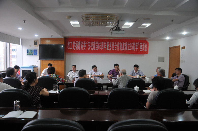 2014年9月30日,农工党福建省委会在福州召开庆祝中华人民共和国成立65周年暨中国共产党领导的多党合作制确立65周年座谈会。参加座谈会的有省委会十一届在榕正副主委、常委、部分十届常委、老同志代表等。省政协副主席、省委会主委陈绍军主持座谈会。与会人员紧紧围绕庆祝中华人民共和国成立65周年暨中国共产党领导的多党合作制确立65周年这一主题,结合自身经历,畅谈体会,深情回顾了与中国共产党亲密合作的历程,热情讴歌伟大祖国65年取得的辉煌成就,深切表达对中国共产党的热爱,对多党合作制度的坚定信念,对中国特色社会主义的道路自信、理论自信、制度自信。大家表示要继承优良传统,切实承担起中国特色社会主义亲历者、实践者、维护者、捍卫者的政治责任,为全面建成小康社会、实现中华民族伟大复兴的中国梦贡献力量。