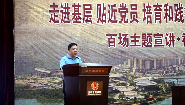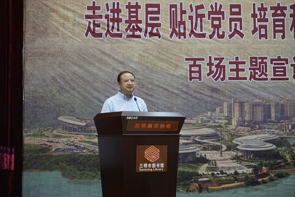 宣讲报告会由农工党百场主题宣讲团领队刘保明主持。三明市政协副主席、三明市旅游局局长陈欣出席宣讲报告会。中共三明市委统战部部务会议成员、调研员曹观华应邀出席。农工党三明市委会专职副主委赖荣致辞。