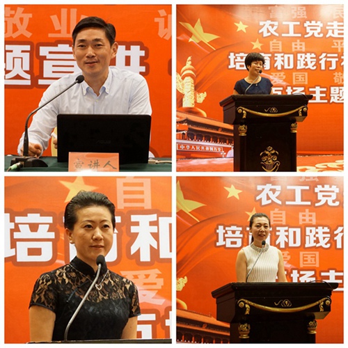 杨琳指出,今年的百场主题宣讲活动,是继2014年举办“中国梦农工情”演讲活动和2015年开展“学精神学党章学党史”活动以来,开展坚持和发展中国特色社会主义学习实践活动的又一重要举措,对于推动全省农工党深入学习贯彻中共十八大精神和习近平总书记系列重要讲话精神具有重要意义。全省各级组织和广大党员要以此次集中宣讲为契机,见贤思齐,知行合一,弘扬优良传统,学习先进榜样,着力培育和践行社会主义核心价值观。