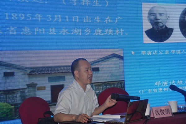 农工党中央宣讲团成员、农工党湖南省委会宣传处处长钱俊清,以《农工先烈:艰苦卓绝,忠勇奋发的民主革命家——邓演达》为题,用详实的历史史料、珍贵的历史照片,以生动的语言配合PPT,分八个部分为与会者讲授了农工党创始人邓演达从求学、从军、追随孙中山、北伐、联共反蒋到南京遇害的人生历程,讲述邓演达同志是艰苦卓绝、忠勇奋发的一生,钱俊清为大家上了一堂生动的农工党党史课。