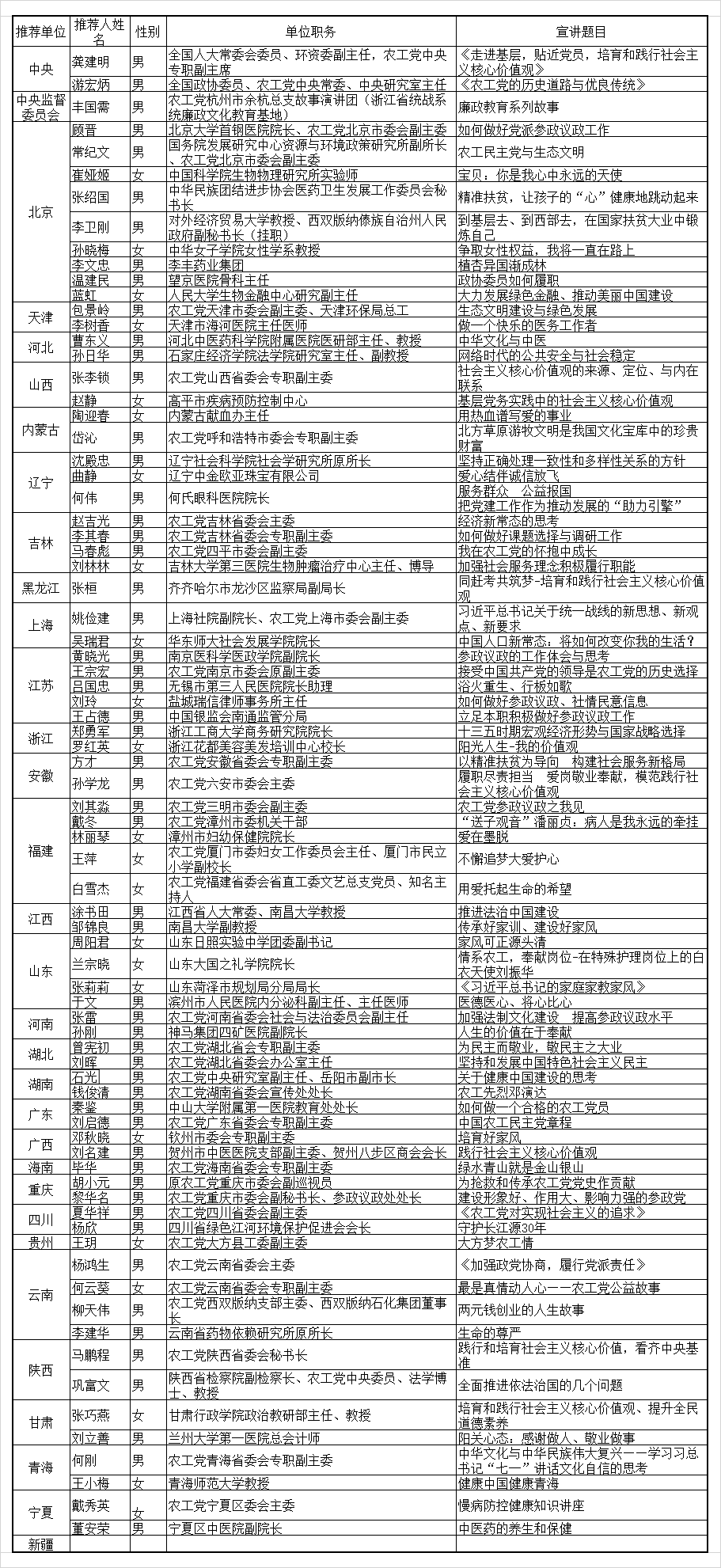 农工党“百场主题宣讲”专家库