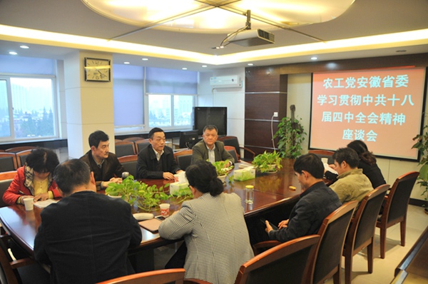 2014年11月5日,农工党安徽省委会在合肥召开学习贯彻中共十八届四中全会精神座谈会。安徽省政协副主席、农工党安徽省委会主委牛立文,省委会专职副主委方才,省委会副巡视员韩正平等出席座谈会。座谈会由方才主持。