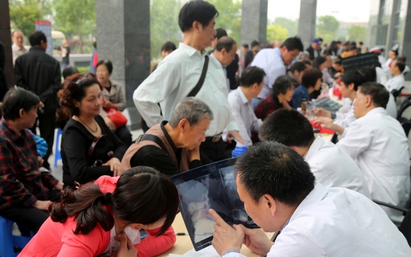 义诊现场,60多位农工党医卫专家一字排开,涵盖了中医内科、中医肛肠科、中医骨伤科、肿瘤科、针灸推拿、外科、儿科、妇产科等十多个专业领域。很快问诊的人群在专家席位前排成候诊长龙。有的是附近居民碰巧经过抓住机会咨询,有的是在报纸看到了义诊预告后从周边地区慕名而来。专家们认真诊断、耐心释疑、细致开方,一直忙到中午。半天时间,倾情服务千余患者,赢得了病人和家属的交口称赞:“这么多专家的义诊还真不多见,农工党真是为百姓做了一件大好事!”