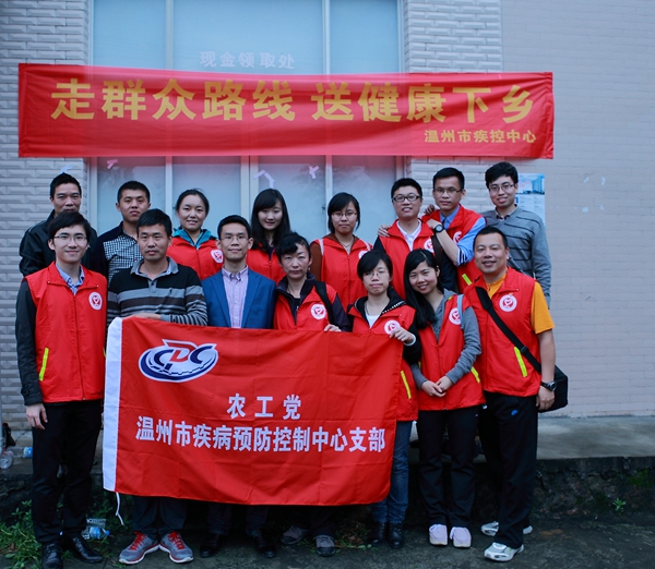 2014年5月10日,农工党温州市疾控中心支部党员和温州市疾控中心志愿者服务大队的青年们,来到苍南县凤岭村开展送健康下乡活动。