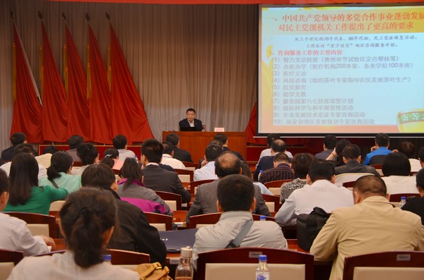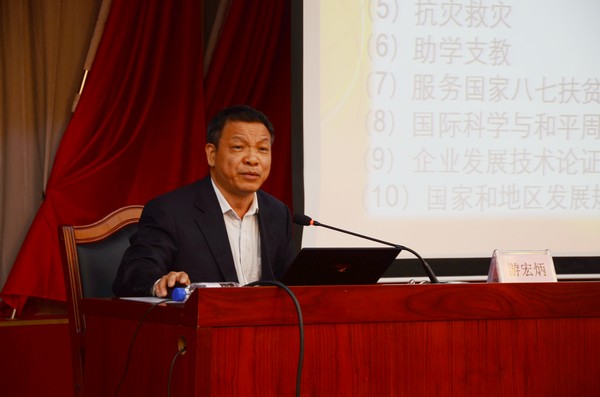 图为农工党中央办公厅主任游宏炳讲授机关工作的经验体会