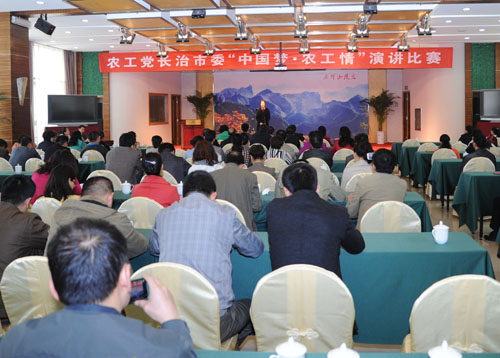 为推动全市党员深入开展坚持和发展中国特色社会主义学习实践活动,同时也为参加农工党中央在全党举办的 “中国梦•农工情”演讲比赛选拔优秀人才,根据农工党中央和农工党山西省委会有关精神要求,以及《农工党长治市委会开展坚持和发展中国特色社会主义学习实践活动方案》安排,3月30日,农工党长治市委会在全市党员中开展了“中国梦·农工情”演讲比赛。