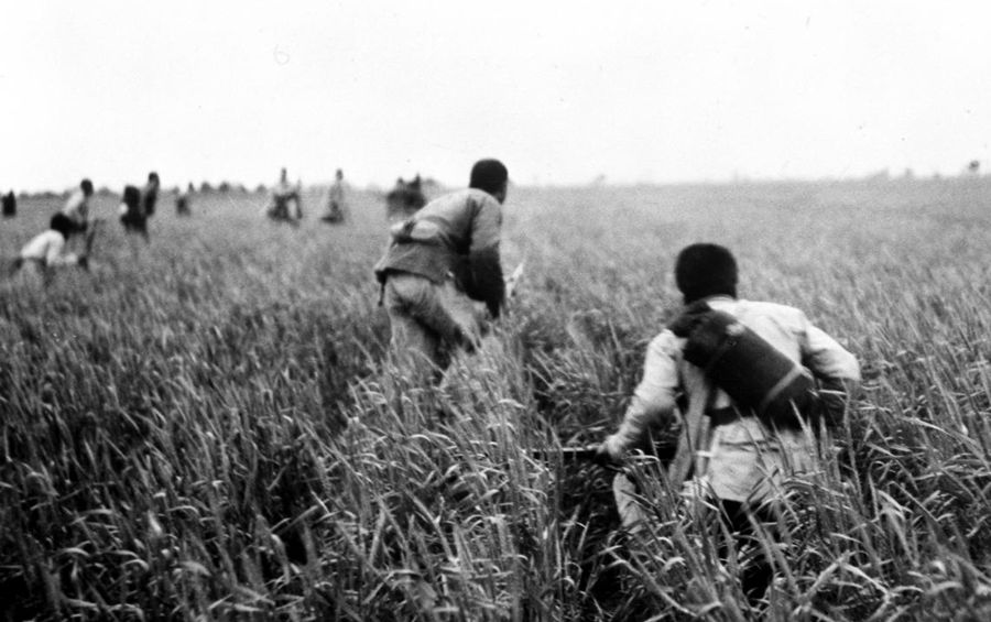 八路军战士在冀中的麦田里进行伏击战 新华社图片