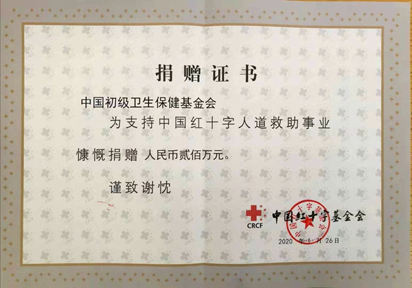 2020年1月26日,农工党中央主办的中国初级卫生保健基金会捐款200万元用于武汉火神山医院建设。