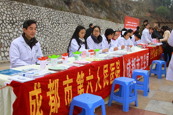 2015年2月6日,由中共成都市委宣传部主办,成都市卫生局、成都市科技局、成都市文化局等部门协办的2014年成都市科技文化卫生“三下乡”暨百姓故事会巡讲活动在金堂县平桥乡文化广场隆重举行。成都市第六人民医院由纪委书记郑光全带队,支部的2名党员和心内科、神经内科、急诊科、医务科、护理部、院感科的8名专家,参加了此次大型公益活动。活动内容有做义诊、送健康;演节目、送欢乐;写对联、送祝福;搞咨询、送帮助;办展览、送知识;发书籍,送文化等等,活动现场人山人海,受益群众数百人。