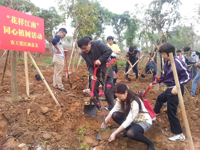 为进一步响应中共南宁市委、市政府打造“花样南宁”的号召,农工党南宁市江南区总支于3月28日上午,组织党员到正在建设中的江南公园,参加江南区统一战线成员“花样江南”同心植树活动。