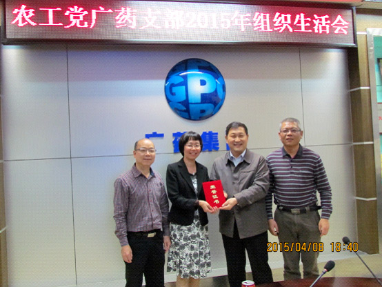 2015年4月8日下午,农工党广药支部在广药集团总部召开2014年工作总结暨2015年工作计划会。农工党广东省委会主委马光瑜,农工党广东省委会副主委、农工党广州市委会主委余明永,农工党广东省委会副主委、农工党惠州市委会主委刘冠贤,农工党广东省委会专职副主委刘启德等领导为广东省先进集体和先进个人颁奖,广药集团董事长、中共广药集团党委书记李楚源等广药集团领导出席了活动。