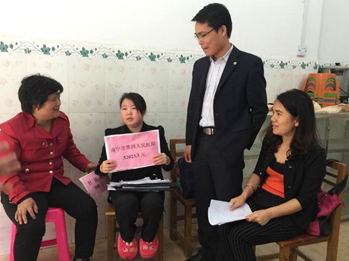 蒙超英是2011年去世的瑶山好村医蓝云的遗孀。今年1月,这位坚守瑶山的美丽村医不幸患上肾衰竭。当得知蒙超英患病的消息后,南宁市第四人民医院发起募捐倡议,一场声势浩大的爱心捐款活动在医院迅速展开,全院职工纷纷解囊相助,共筹集爱心捐款3.2万余元。农工党四医院支部党员也为蒙超英精神所感动,共捐款2千多元表达爱心。