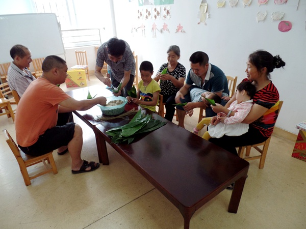 2015年6月19日,在端午节即将到来之际,农工党成都市委会大邑党小组与大邑县残联在残疾儿童学前教育康复中心联合举办“包粽子庆端午”的活动。